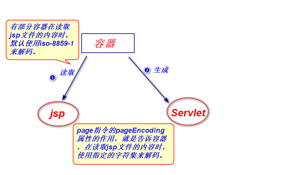 pageEncoding属性:告诉容器,在读取jsp文件的内容时,使用指定的字符集来解码。
